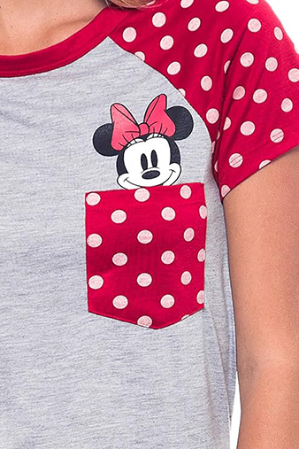 Disney Fashion Contrast Shoulder Top Minnie Pocket Gray
